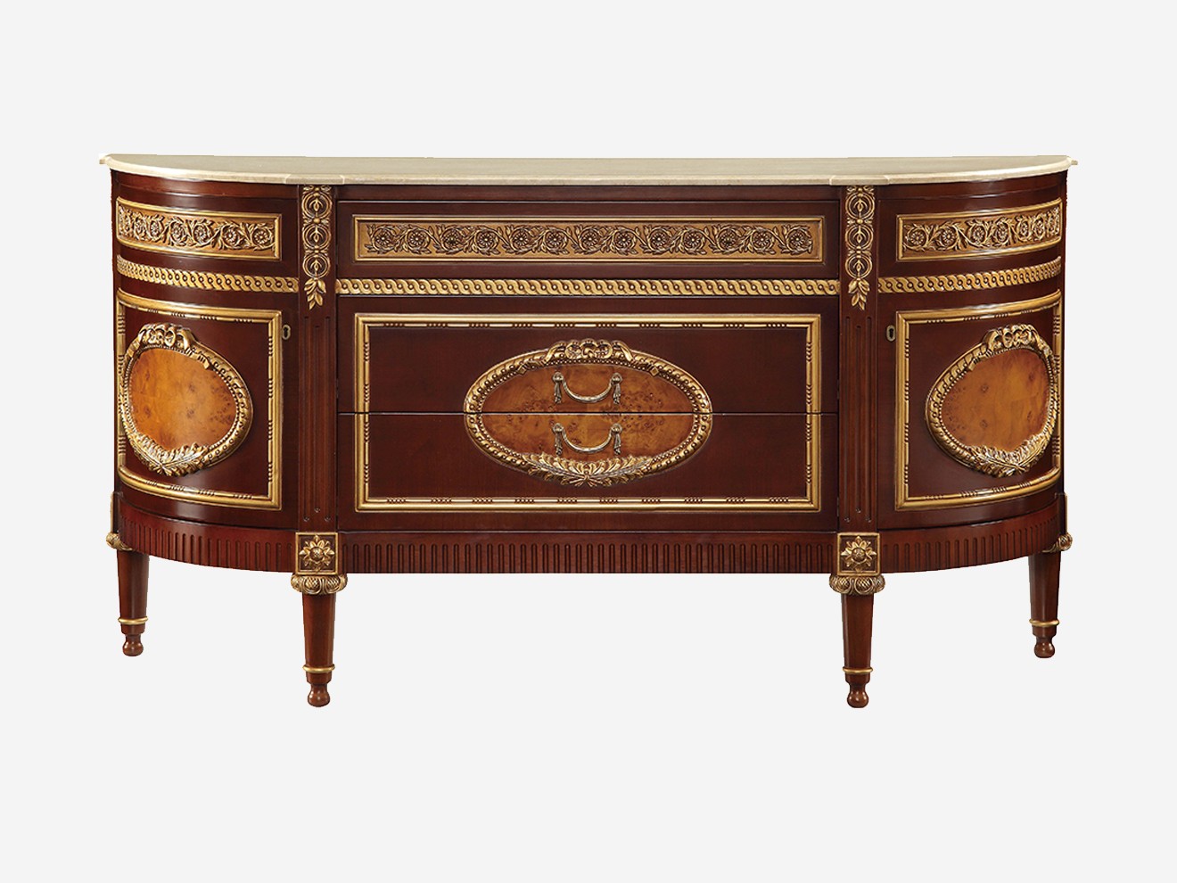 面料:金线米黄大理石、樱桃木皮、树榴拼花
